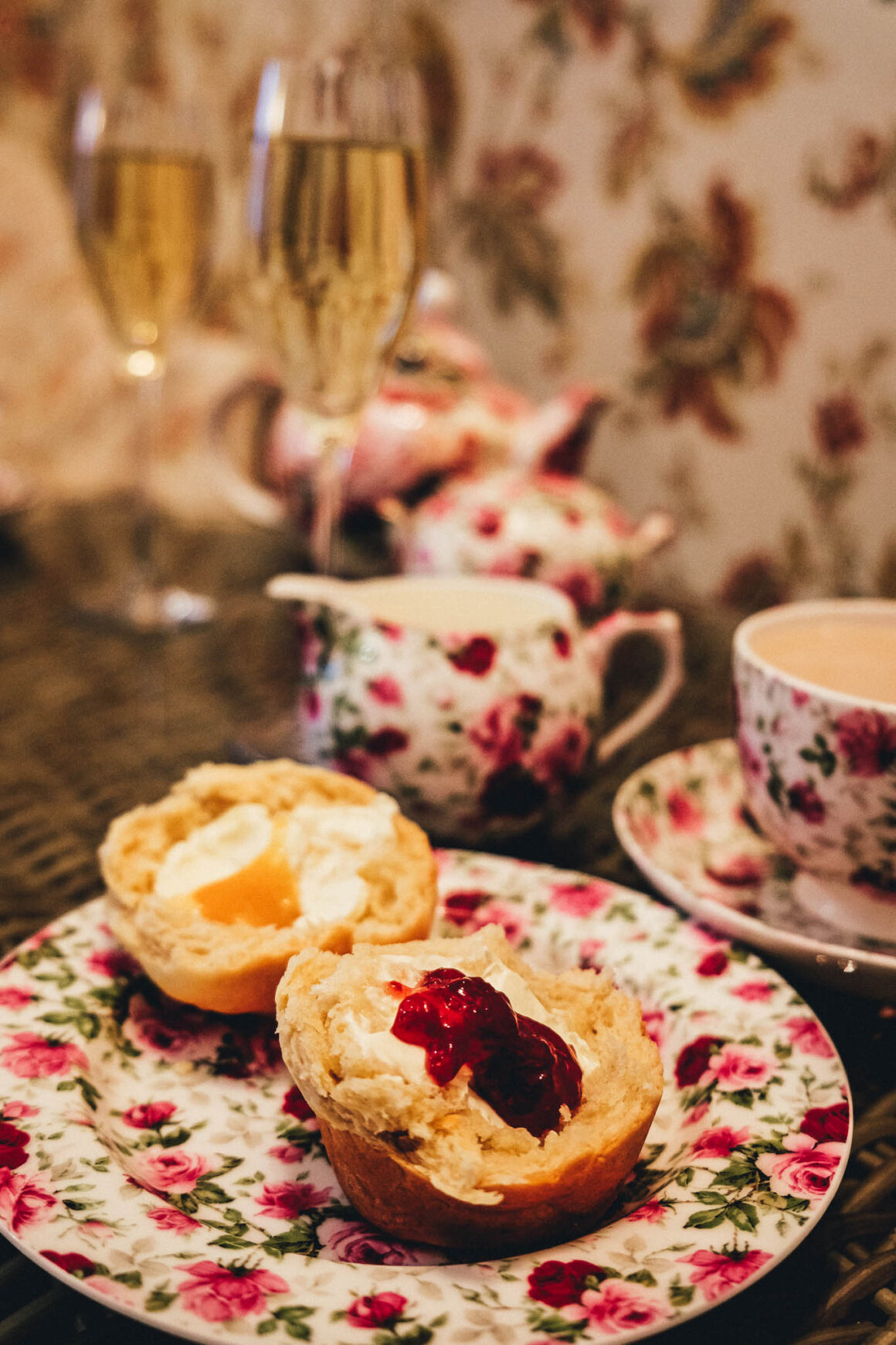 - 2 hemmagjorda scones med ställets egen version av clotted cream, egen äppel- och kanelmarmelad, hemmalagad lemon curd och hallonmarmelad