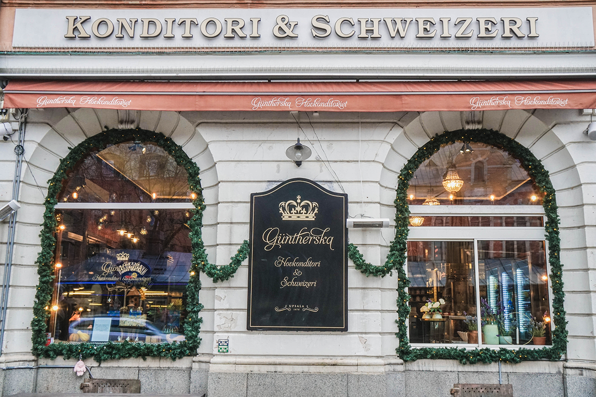 Jag hade lätt kunnat tillbringa en hel weekend med att fika mig igenom en stad. I en studentstad som Uppsala är efterfrågan på bra fikaställen hög och utbudet anpassat därefter. Jag hade med andra ord haft fullt upp att caféhoppa mig fram i staden, men faktum är att Günterska Hovkonditori & Schweizeri nere vid Fyrisån har allt jag vill ha. Familjen som driver konditoriet vet vad de sysslar med, de har lärt sig hantverket under inte mindre än fem generationer. Det som serveras bakas från grunden och det märks att fokus ligger på hög kvalitet. För en gångs skull visar det sig att bakelserna som lockar från disken smakar lika gott som de är vackra att titta på. För gäster som vill köpa med sig fika från bageriet/konditoriet och undvika köerna inne vid konditorisalongen finns en butik på gatuhörnet, några steg bort från själva konditoriet. Adress: Östra Ågatan 31