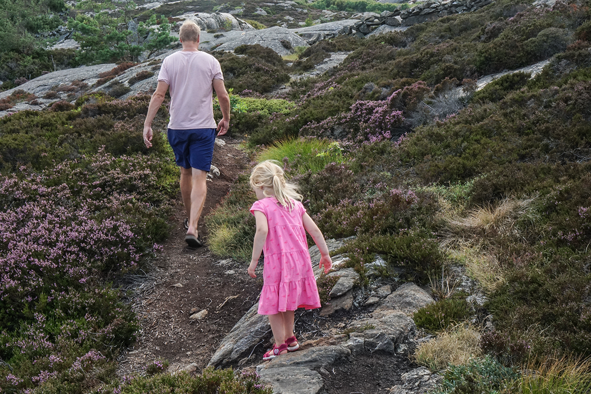 - Islandsberg: Vi får tips från flera olika håll att ta oss till det kuperade landskapet Islandsberg och dess gnejsklippor. Ortsnamnet sägs komma från Island eftersom de trädlösa och karga landskapen påminner om varandra. Vi parkerar bilen vid infarten till Islandsbergsskylten vid vägen från Fiskebäckskil till Grundsund (på grusvägen in mot Islandsberg får bara boende köra) och promenerar fram på vägen som senare övergår i väl upptrampade stigar genom skogen. Efter ett par kilometers promenad når vi till slut fram till en pil som pekar mot fyrhuset, in på en snårig stig genom kuperad terräng och ljungbuskar. Utsikten över havet här ute är definitivt värd promenaden, men vi själva vände faktiskt tillbaka mot bilen strax innan vi nådde ut till de lodräta klipporna ner i havet och till det före detta fyrhuset som ligger längst ut på klippan. Det gamla fyrhuset är numera en privat sommarbostad. I slutet av 1800-talet vistades Evert Taube här hos sin morbror som var fyrvaktare på Islandsberg, senare ägdes fyren av Evert Taubes syster Karin. Här hittar ni mer information om Islandsberg.
