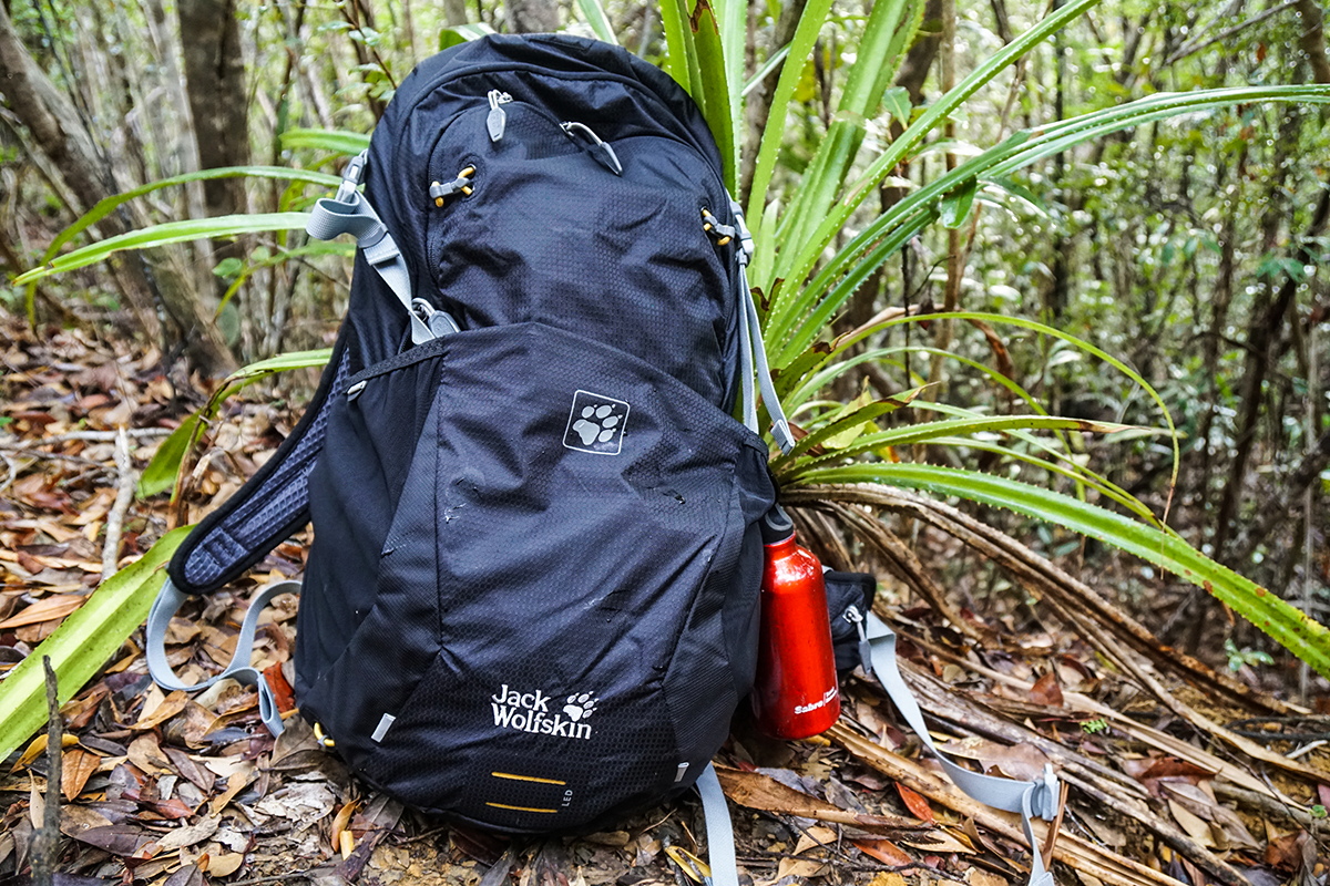 Under min Madagaskarresa hade jag med mig ryggsäcken Moab Jam 24 från Jack Wolfskin (”JW”), vilken jag tidigare hade fått i pressutskick. JW-väskan rymmer 24 liter och dessa fyra extra liter jämfört med Thuleväskan ovan gör faktiskt mer skillnad för packningsmängden än vad man kan tro. Jag hade med ryggsäcken som handbagage under långflygningen mellan Sverige och Madagaskar och fick utan problem plats med extrakläder, dator, kamera, laddare och småprylar. Mitt handbagage agerade också dagsutflyktsväska och sällskap under samtliga mina hajker i Madagaskar. En skillnad med JW-ryggsäcken jämfört med Thule ovan är att JW verkar vara mer anpassad för vandring och genomgående känns mer rejäl. Jag upplever också att JW:s ryggpanel och axelband andas och leder bort fukt lite bättre än Thulevarianten. En annan skillnad jämfört med Thule är att JW har betydligt fler fack – och i min värld blir väskor bättre ju fler fack de har!