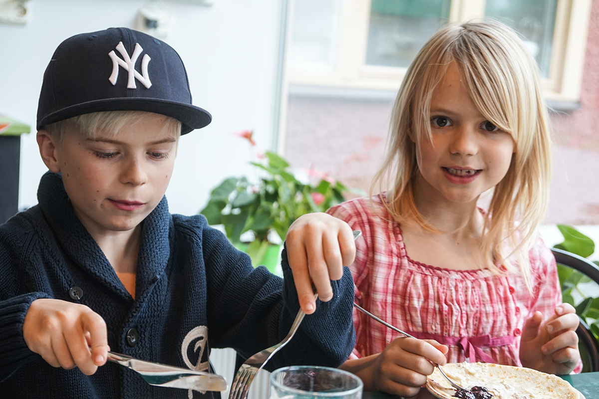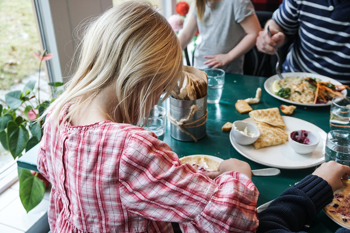 Mätta barn är (oftast) glad barn och i vår familj blir det alltid en avvägning om magarna ska fyllas innan avfärd eller under aktiviteten. I det här fallet läste vi lite snabbt på museets hemsida att den prisbelönta restaurangen Matmekka skulle servera eko- och närproducerade rätter som dessutom skulle vara prisvärda. Fem pannkakor för 100 kronor kan jag däremot tycka är sådär prisvärt. Vår nota för en vuxenportion med stekt ris, en barnportion med spaghetti och köttfärssås och en tallrik pannkakor landade på 312 kronor. Till Matmekkas försvar ska jag säga att barnportionerna var otroligt goda (det stekta riset sådär) och dessutom ingår en superfräsch salladsbuffé och bröd.