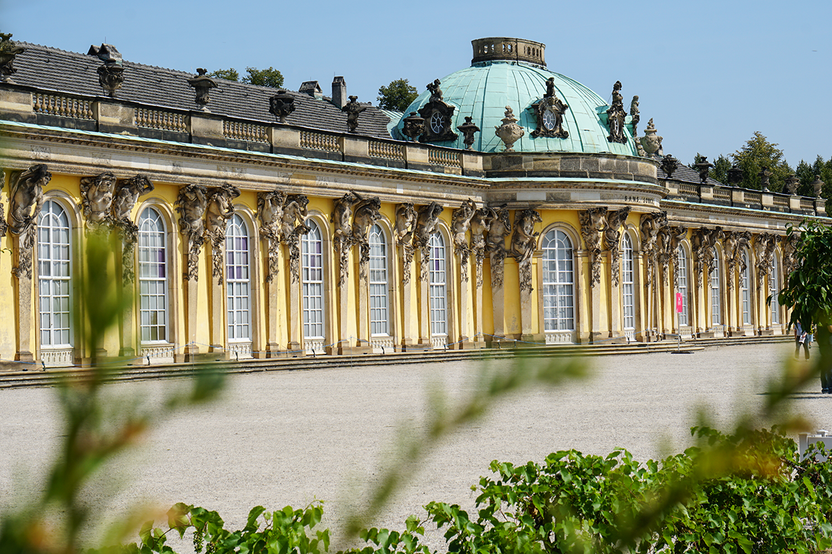 En punkt högt upp på önskelistan, som jag knappt vågade hoppas på givet att jag bara hade ett dygn i Berlin, var ett besök till Potsdam som ligger ca 30 min med bil utanför Berlin. (Det går såklart utmärkt att ta tåget hit). Här ligger slottet Sanssouci – på franska betyder ordet ungefär ”Inga sorger”. Det här slottet är ett av mina favoritslott, jämsides med mina skotska favoriter. Min far reste inte mycket under sina dagar, men resan hit pratade han om ofta. Jag är glad att jag och mitt sällskap hann få några timmar här ute!