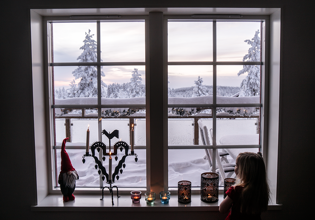 Iscensatt tänker ni? Nja, sanningen är att Nelly allt som oftast hängde vid fönstret för att spana på tomten. För jo, vi såg ett helt gäng av den varan i fjällen.