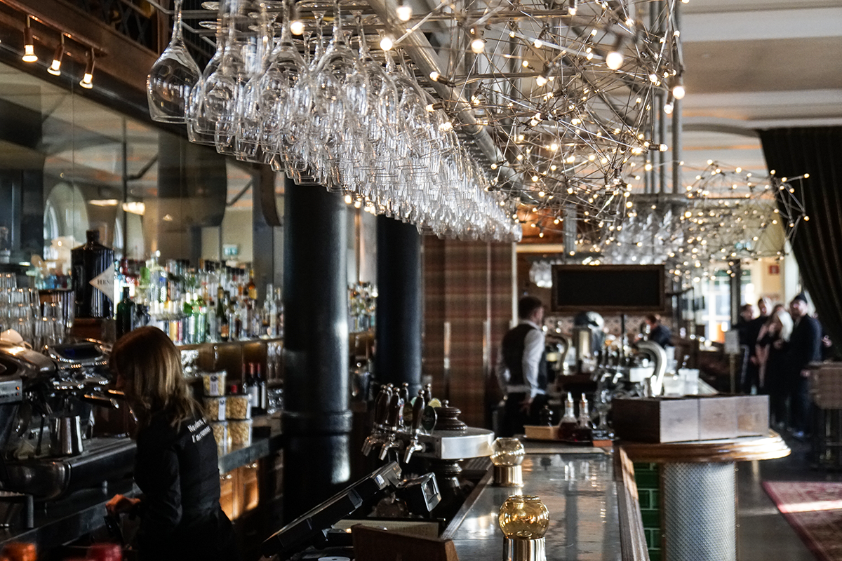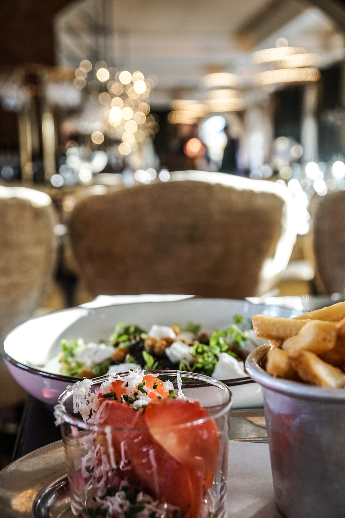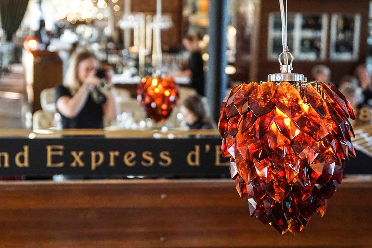Stationens inredning har inspirerats av arkitektens resor till Europas storstäder. Som resebloggare är det givetvis svårt att inte falla pladask för restaurangens inredning, vars tema flirtar med både Paris, London och Rom. Paris – Brasserie ligger längst in i lokalen och är Stationens klassiska restaurangdel. Här ligger fokus på Paris och dess brasserier/ölbryggerier och maten beställs från en à la carte-meny som erbjuder tidlösa klassiker. För egen del tycker jag också att de röda sammetsfåtöljerna, mönstertapeterna och pärlbeprydda lampskärmarna ger lite vibbar av Orientexpressen. I London – Bar erbjuds bland annat lunch och en uppskattad afternoon tea som serveras varje helg 12-16. Här är stämningen avslappnad, tänk er en prestigelös engelsk pub. Roma – Café är ganska enkel servering som sväljer många gäster. Här kan du käka både frukost, lunch och fika.