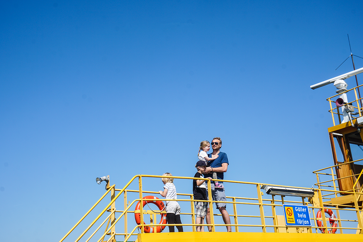 Istället för att susa fram på stora, trista vägar kom min man Tobias i vanlig ordning med ett lysande alternativ för att nå slutmålet, den här gången i form av bilfärjan över Skanssundet över till Mörkö.