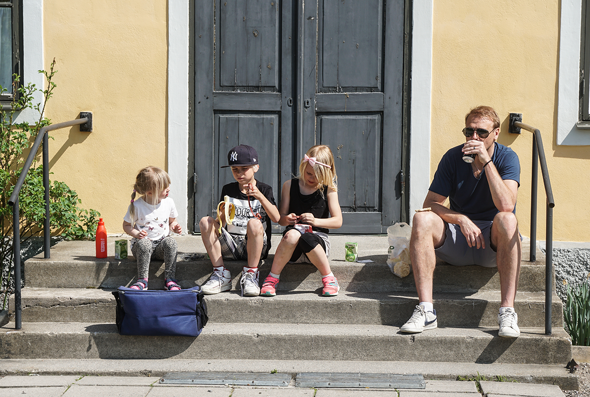 Enda smolket i bägaren var att cafét/värdshuset där vi hade tänkt fylla på energidepåerna var stängt. Det löste sig ändå, jag hade packat en kylväska med färdkost som jag visste skulle komma väl till pass någon gång under dagen. Blåbär, banan, riskakor och bärremmar är perfekt fika till utflykter, tillsammans med drickor som jag lägger separat i en liten kylväska med kylklampar.
