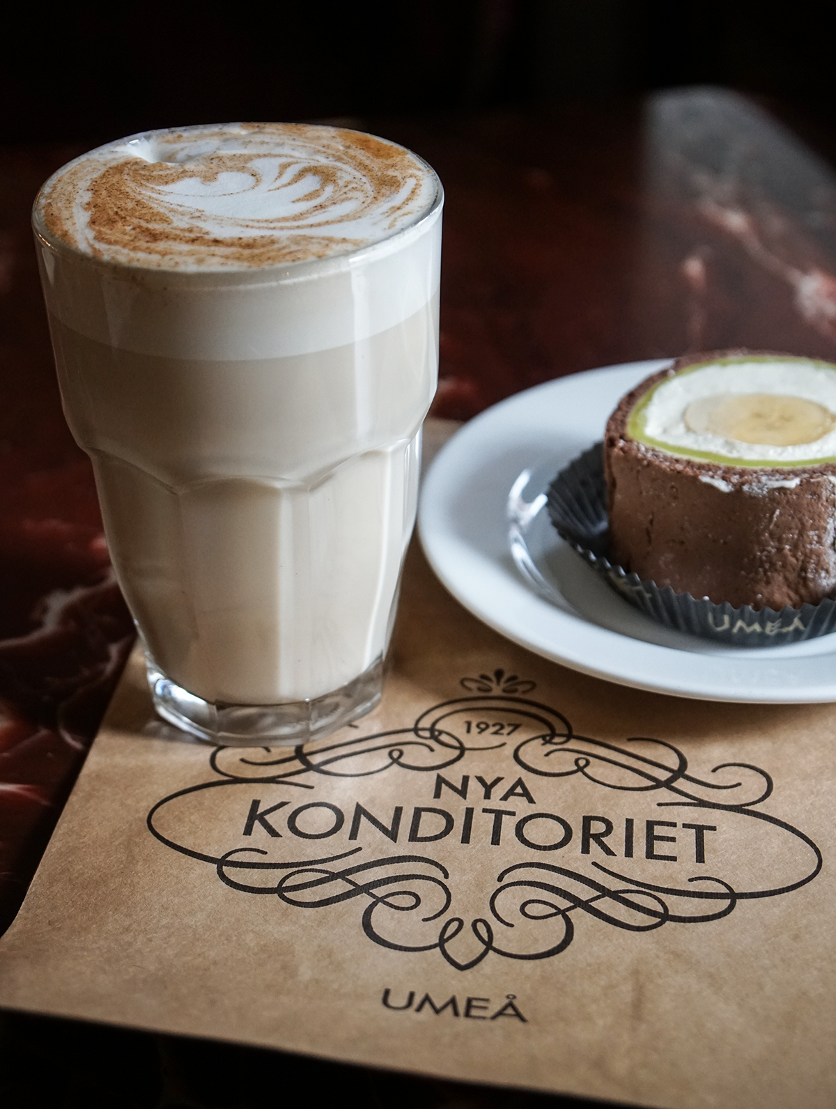 - Nya Konditoriet: ”NK” är ett klassiskt och traditionstyngt konditori som också är Umeås äldsta. Den stämningsfulla serveringen på övre plan är guld för oss fikasugna gäster. Jag rekommenderar NK:s specialité Slabang – ett bakverk innehållande några av mina favoritingredienser samlade i ett: rulltårta, banan, grädde och marsipan. Det kan låta som en märklig kombo, men hos mig gör smakupplevelsen succé. Adress: Kungsgatan 57